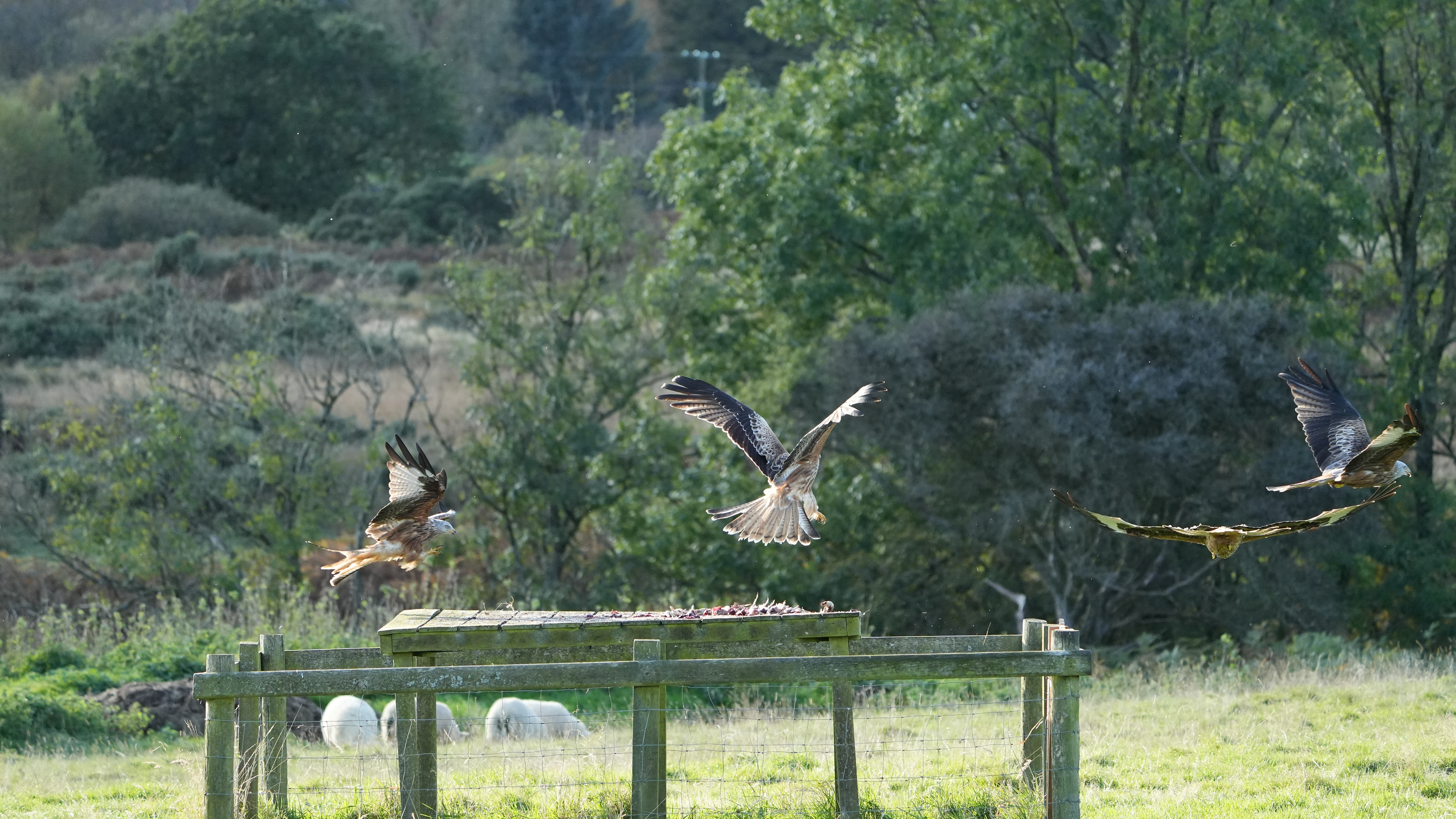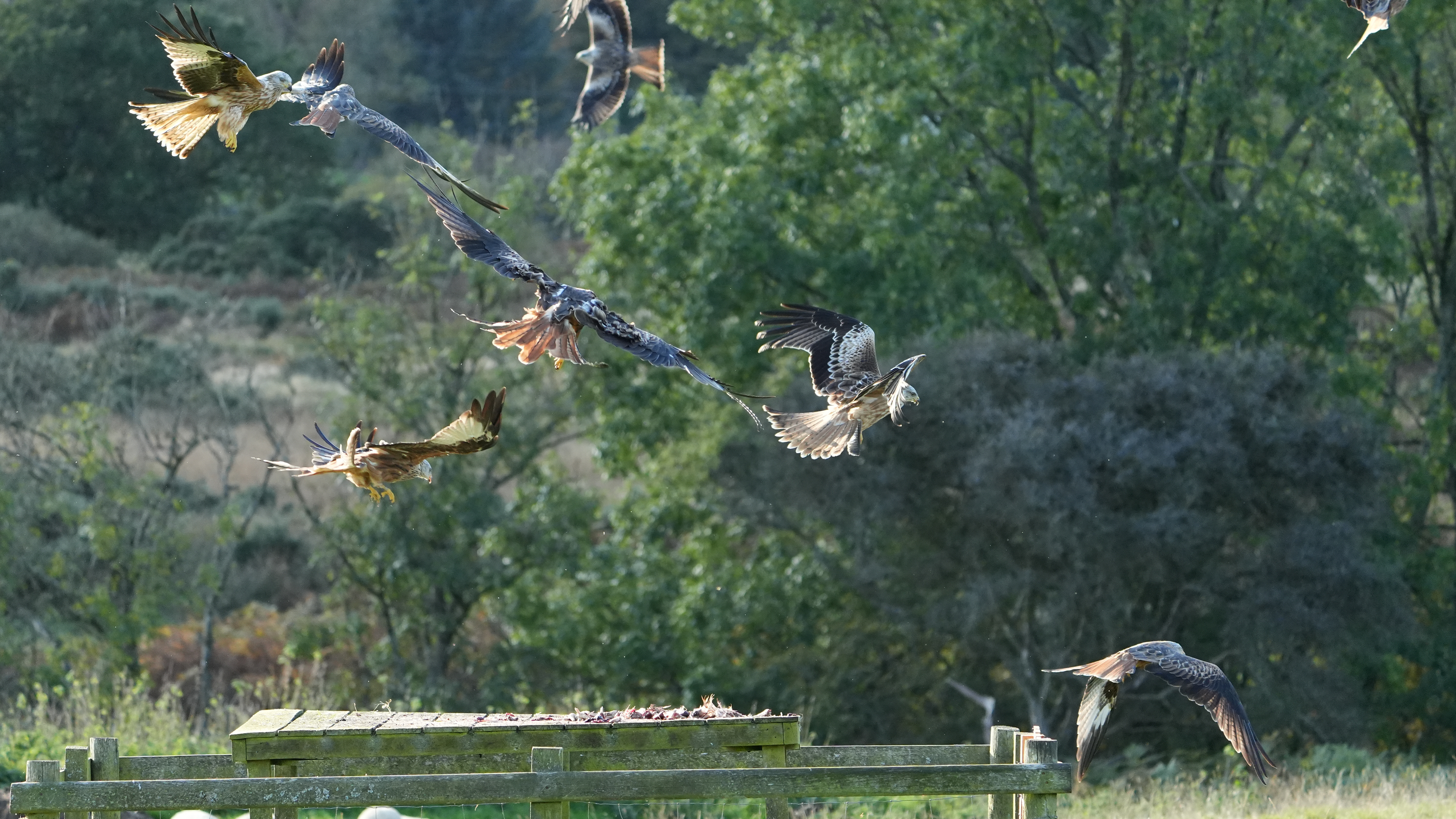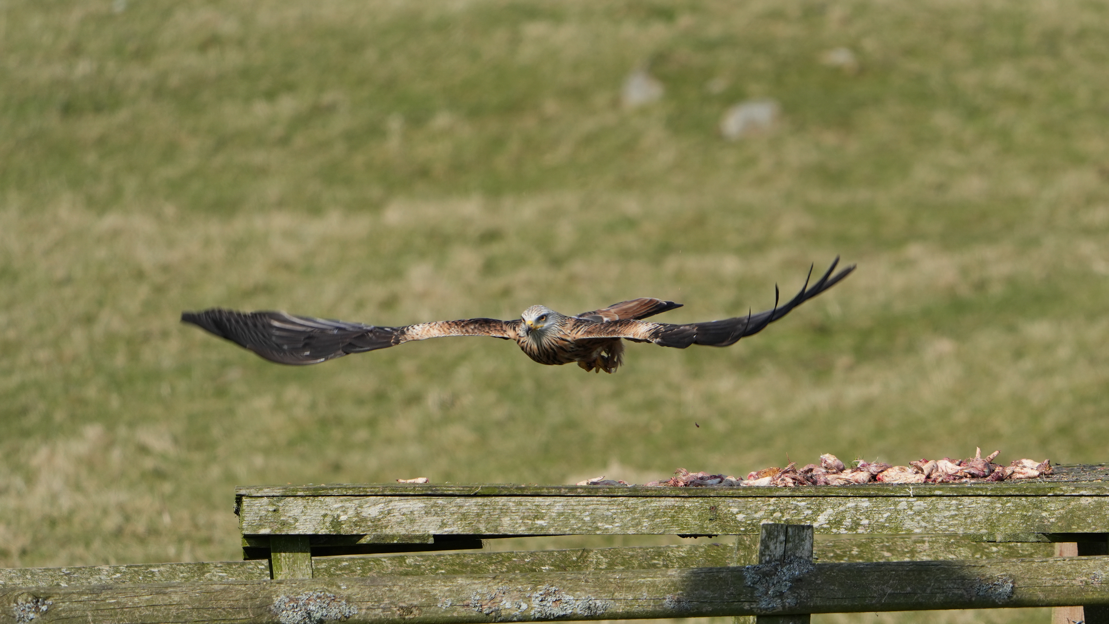 The Red Kite is more scavenger than hunter however it was unfairly persecuted to the point of near extinction in the UK where in the early 1930s only two breeding pairs were known to survive in the British Isles - both in Central Wales. Careful protection of the Welsh kites helped the native population increase slowly, with 20 breeding pairs in 1967, 30 in 1978, 50 in 1988 and 80 in 1992. Today the Welsh population alone is thought to number between 750 and 900 pairs. The first re-introduction of Red Kites to England and Scotland took place in 1989, with the English introductions in the Chilterns, the Scottish birds being on the Black Isle. Reintroduced birds bred for the first time in England and Scotland in 1992. There are now places in the UK where birds gather, at times, in what can only be described as amazing numbers. One of the places this can be witnessed is at the Laurieston Red Kite Centre at Bellymack Farm, Dumfries & Galloway a place I visit regularly whenever in that area. The work the people put in there is nothing short of amazing with the rewards even more so. I hope you can take as much pleasure in viewing these images as I did taking them......